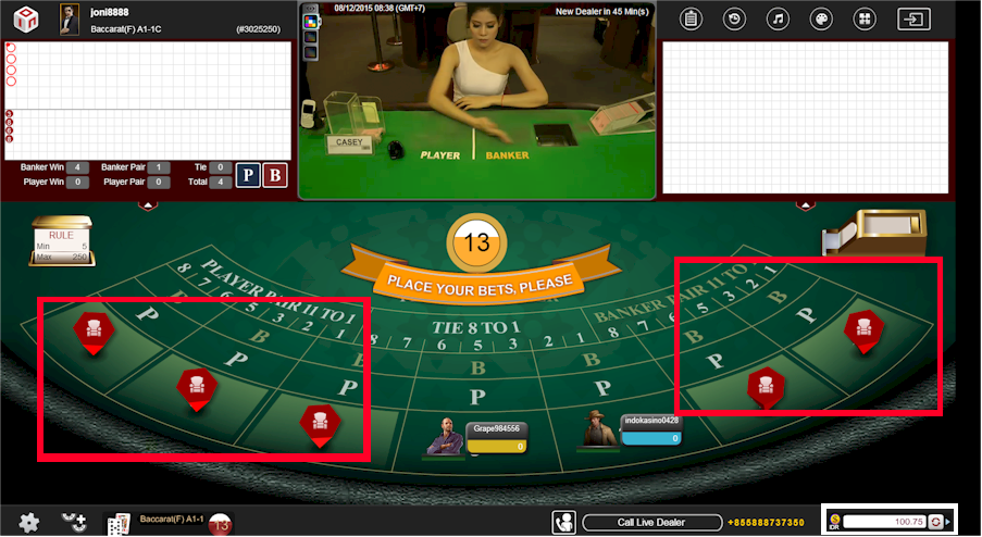Setelah anda memilih taruhan yang ingin anda pasang, maka anda bisa memilih Player, Banker, TIE, Player Pair, atau Bank Pair. Kemudian, setelah anda memilih bagian yang ingin anda taruhkan, maka anda harus memilih confirm bet, sehingga dapat memastikan taruhan anda sudah sah dan benar.